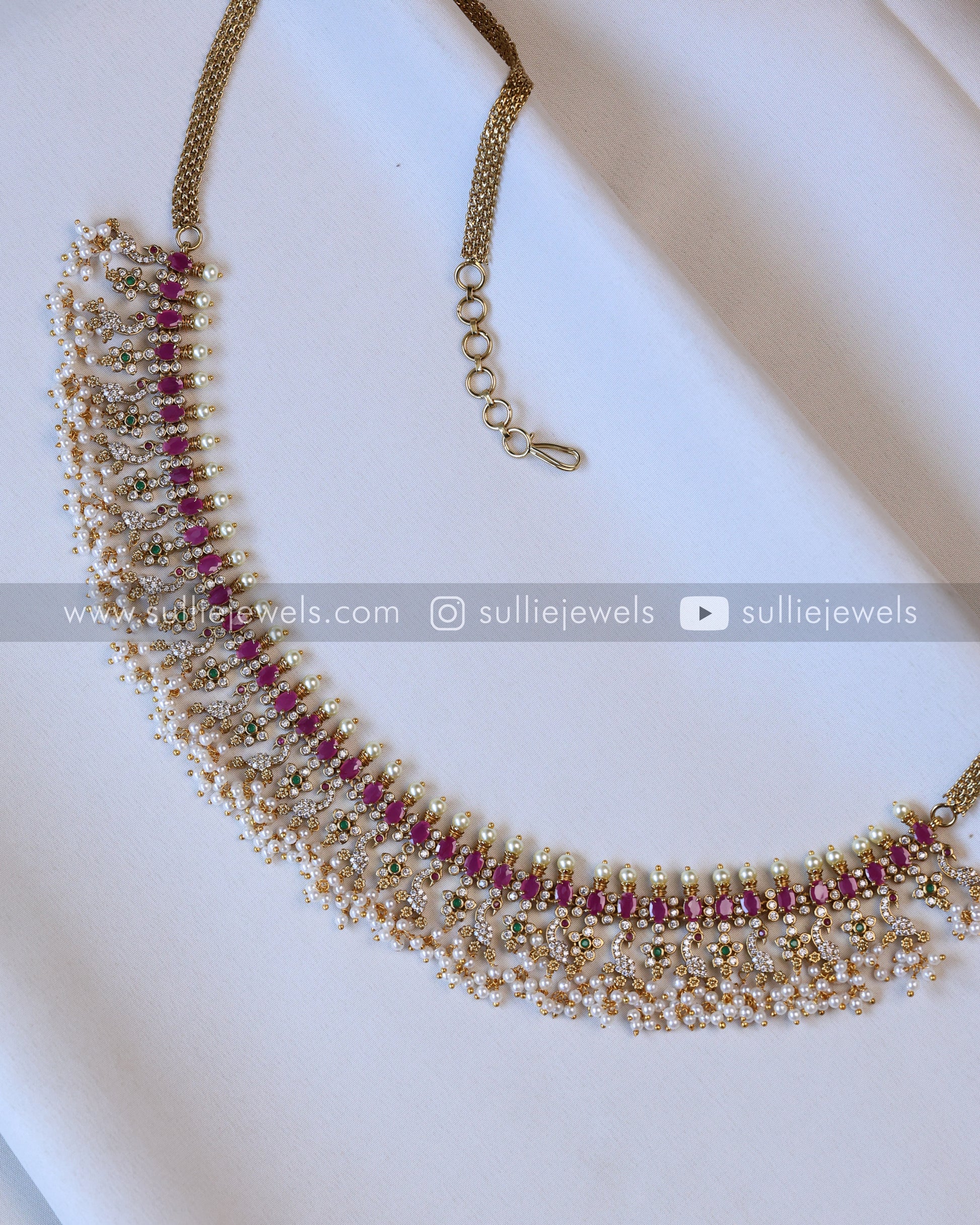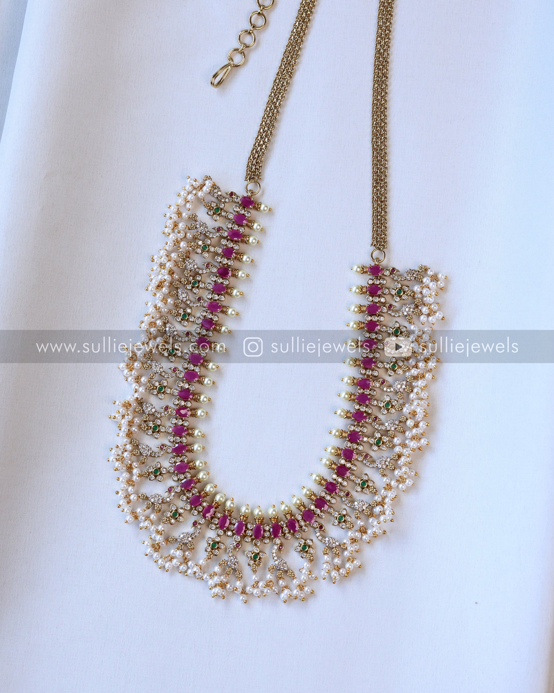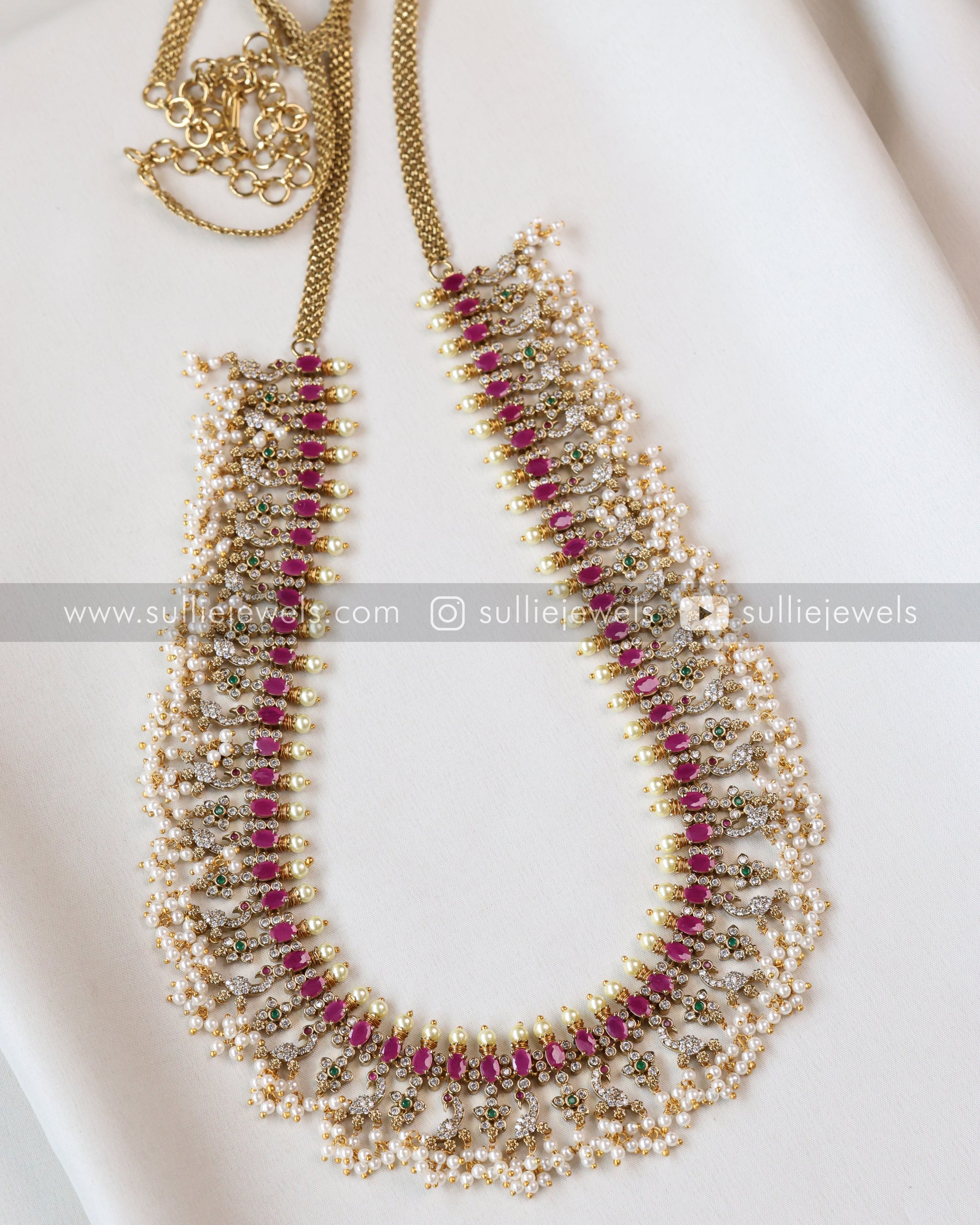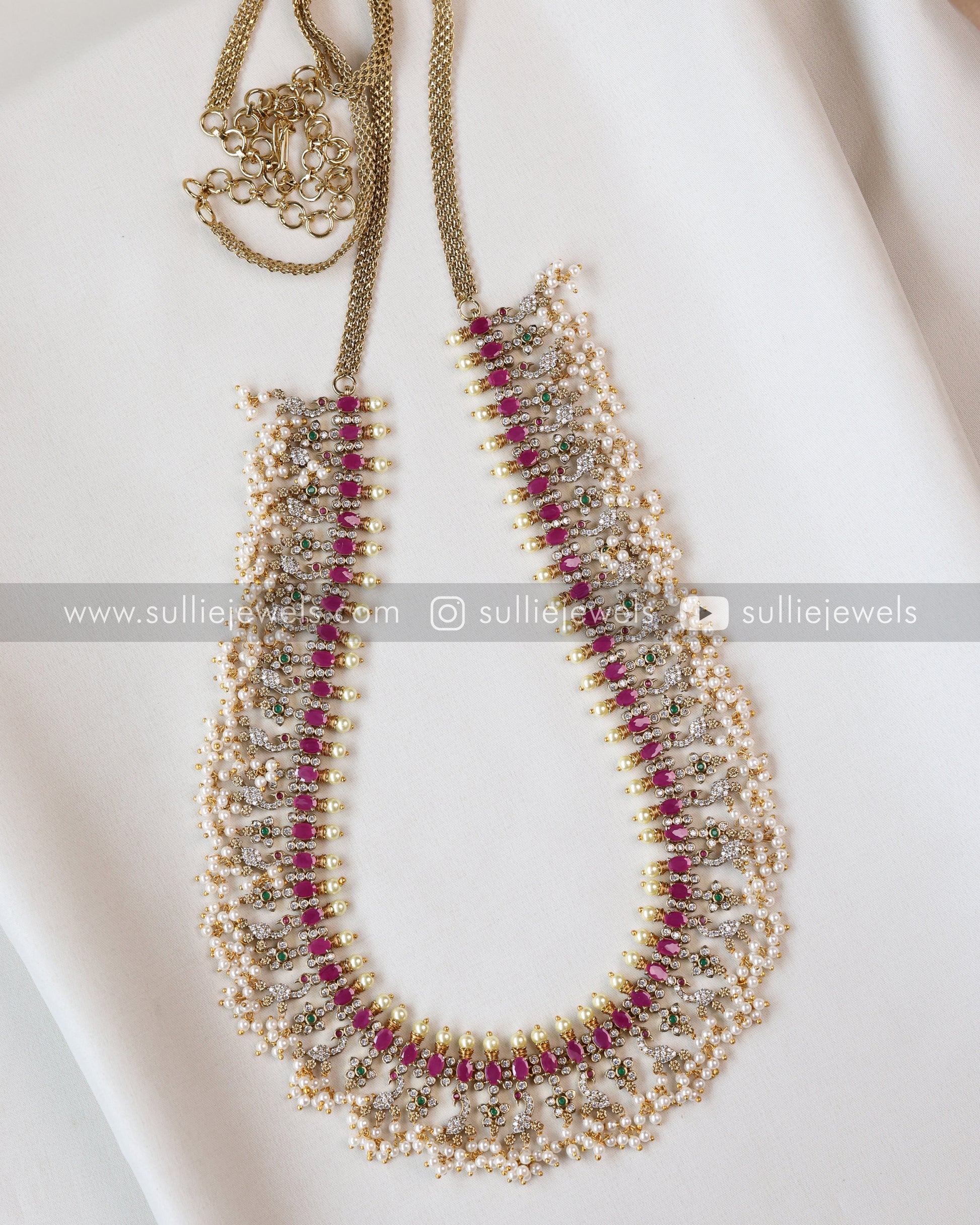 Peacock Guttapusalu Premium Dark Pink Hipchain - Short width / Long width