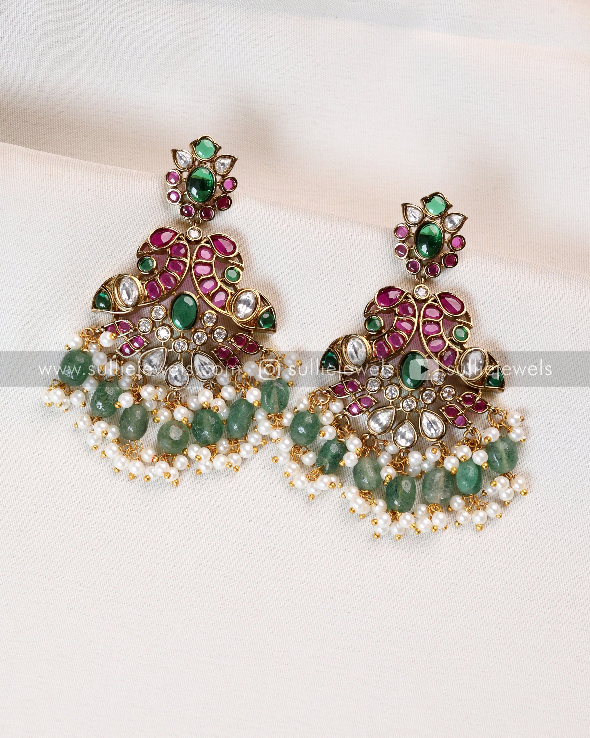 Premium Kemp & Mint Beads Heavy Necklace with Earring
