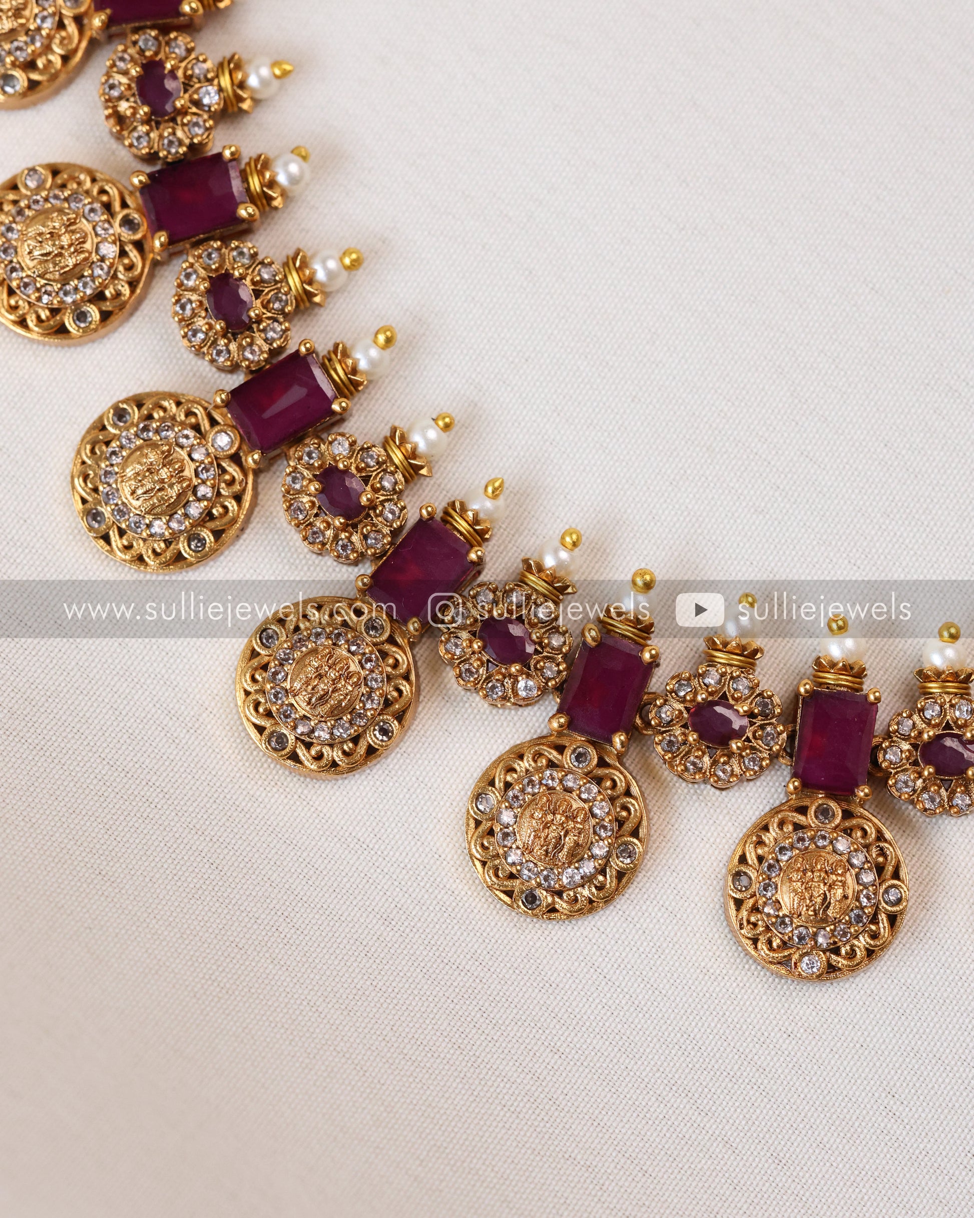 Coin Ram Parivar Necklace with Stud - Ruby / Pink