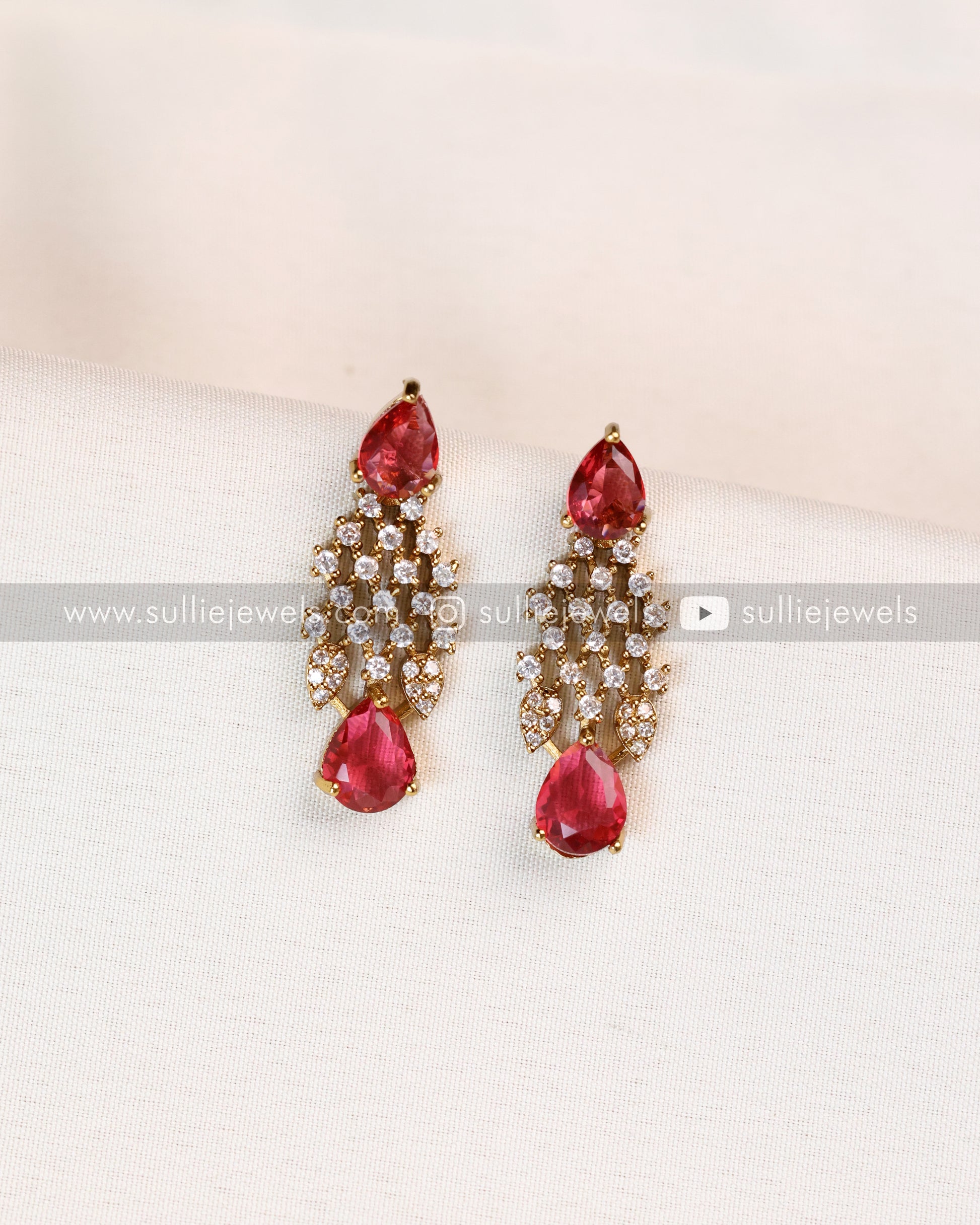 Raindrop Premium Stone Necklace with Earring - Ruby