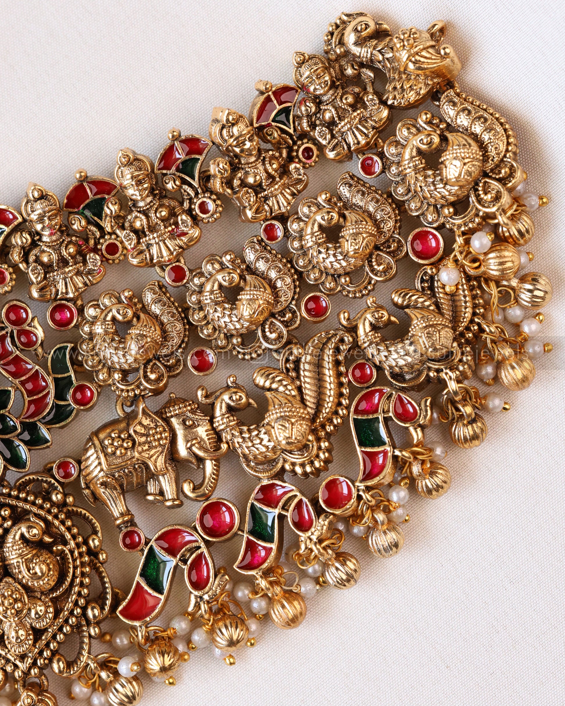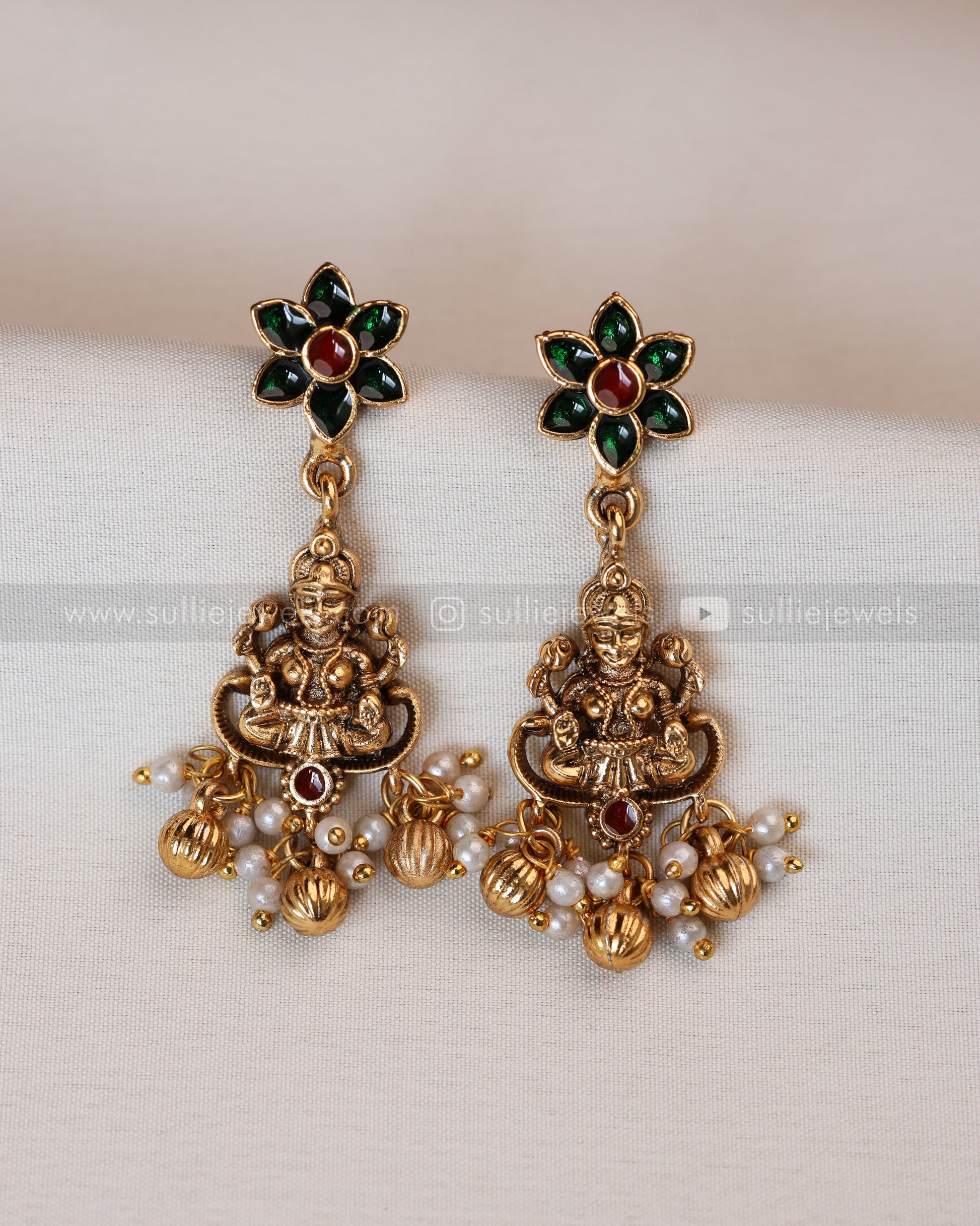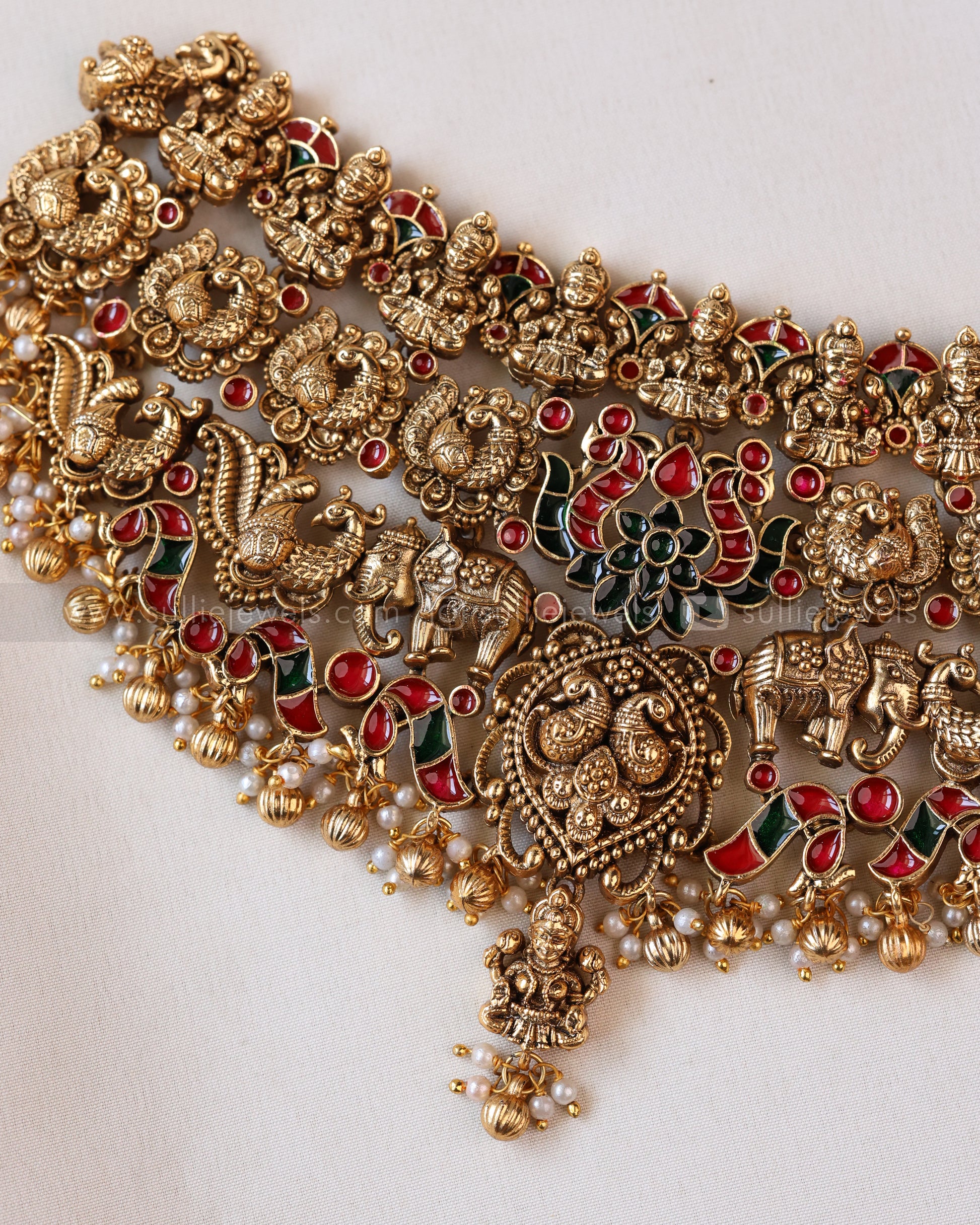 Sullie Basic - Detailed Lakshmi Heavy Choker with Earring ( Gold Beads )