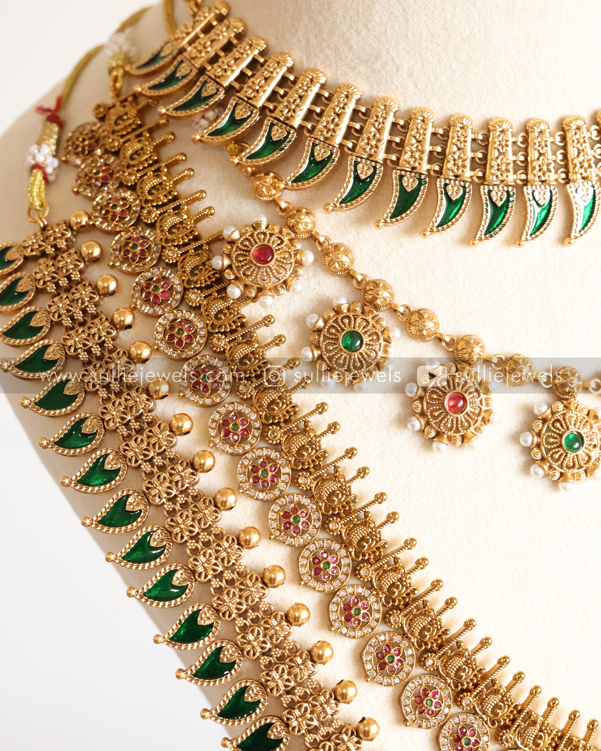 Sullie Basic - Multi Stone Gold Green Palakka Bridal combo ( 8 piece )
