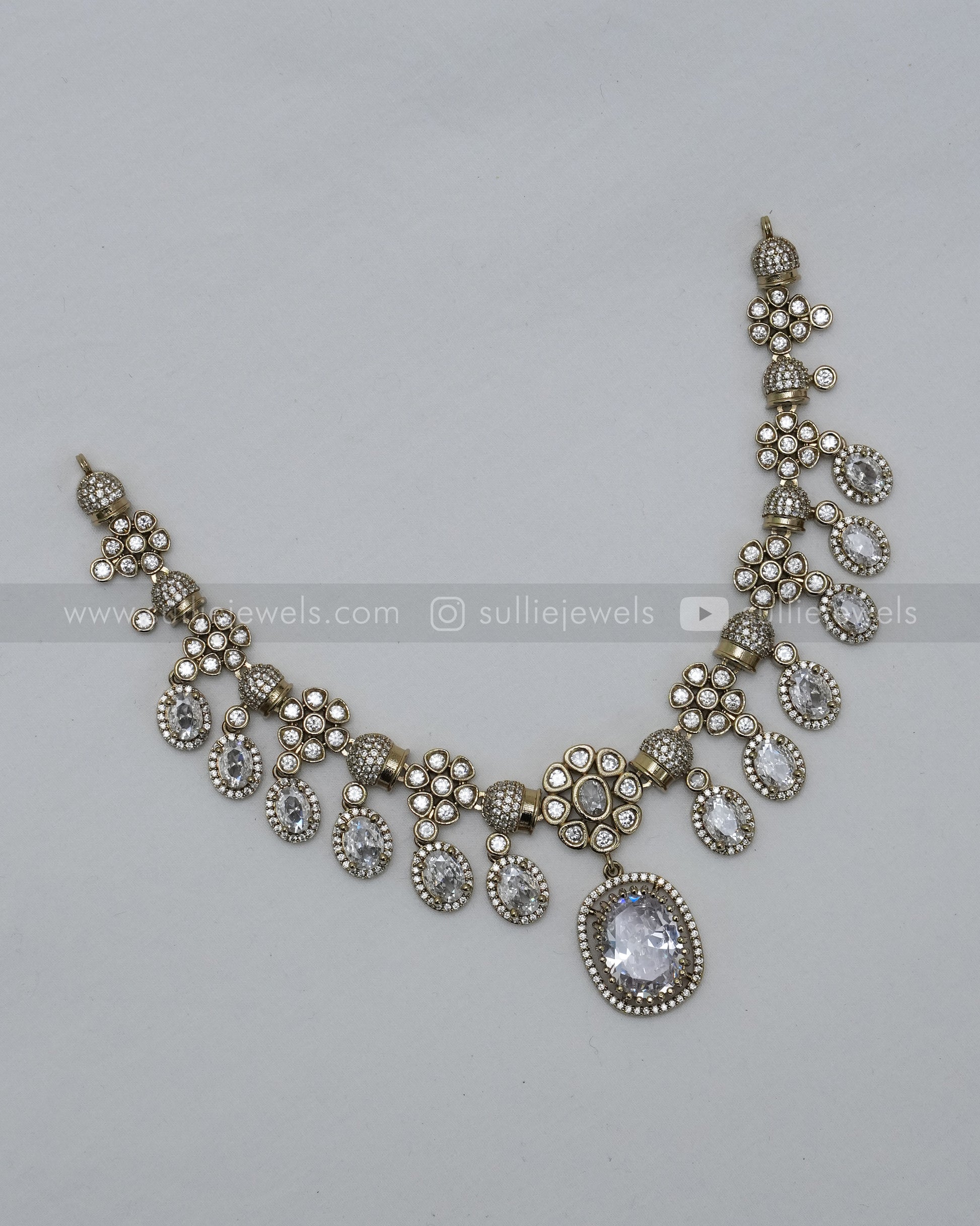 White Premium Victorian Pendant Necklace with Earring